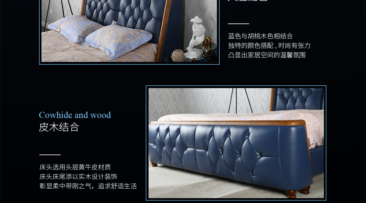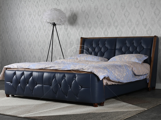 頭層牛皮雙人床8098
