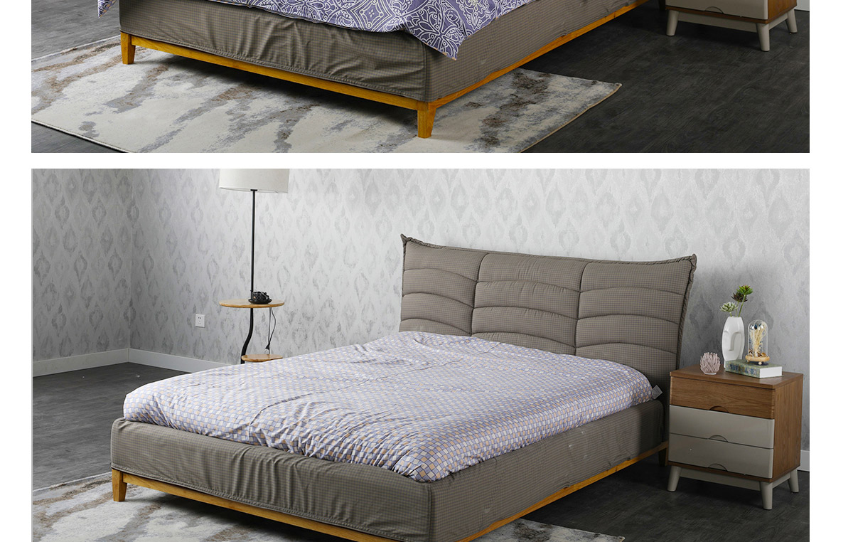框架材質:板木結合。床頭:2.5CM實木框架、木方,床邊:環保中纖板
