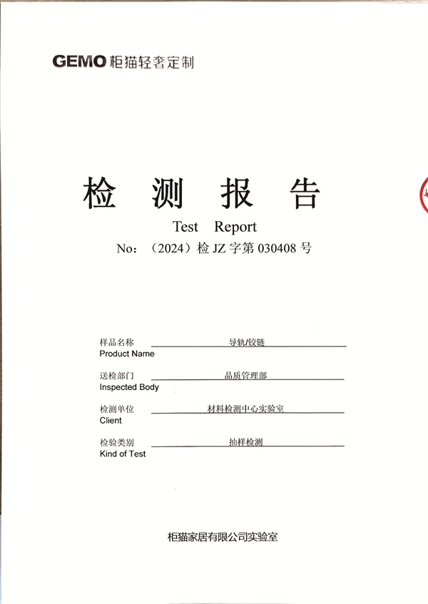 導讀:柜貓輕奢定制2024年3月導軌鉸鏈檢測報告