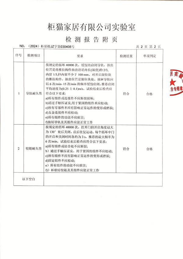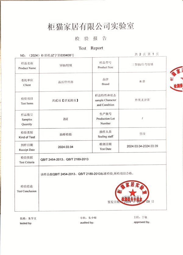 柜貓輕奢定制2024年3月導軌鉸鏈檢測報告