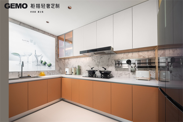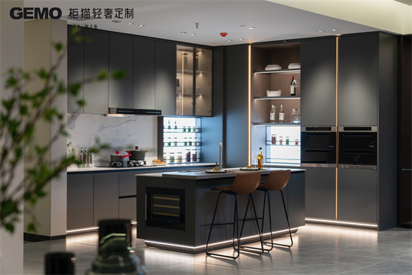 玻璃櫥柜門可以增加空間的視覺通透感,讓廚房看起來更加寬敞明亮。它適合用于展示精美的餐具或收藏品。然而,玻璃需要定期清潔以保持透明,且易碎的性質要求在使用過程中更加小心。